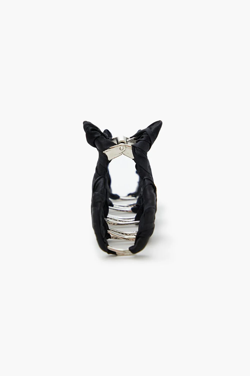 A high-polish claw hair clip featuring a satin ribbon-wrapped design.