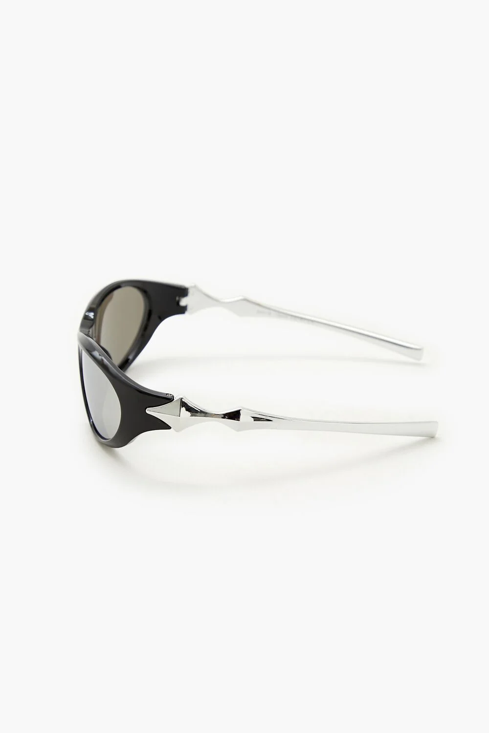 A pair of sunglasses featuring an oval frame and tinted lenses. (Available in two-tone and solid designs.)