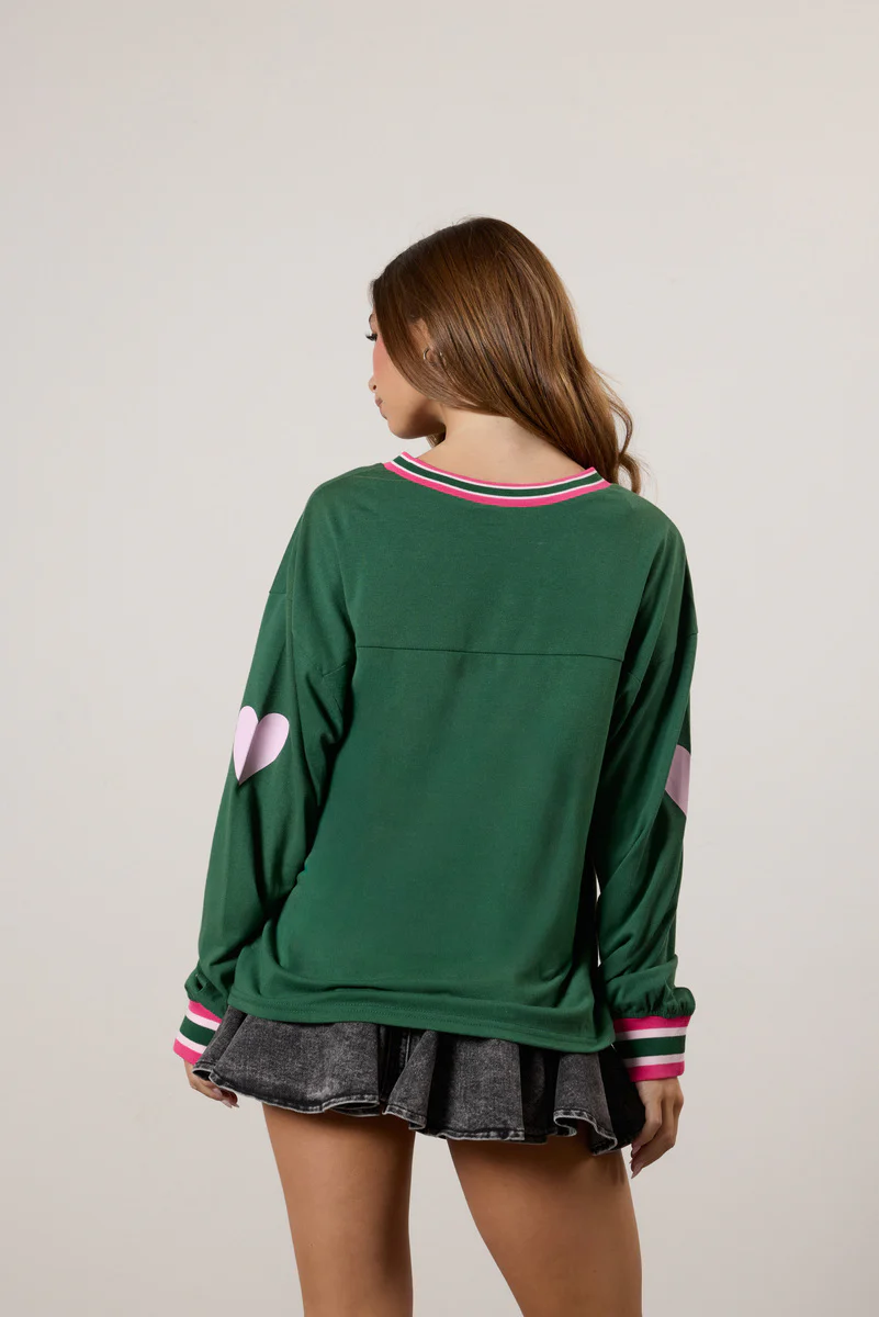 Long sleeves with striped cuffs and heart elbow patches